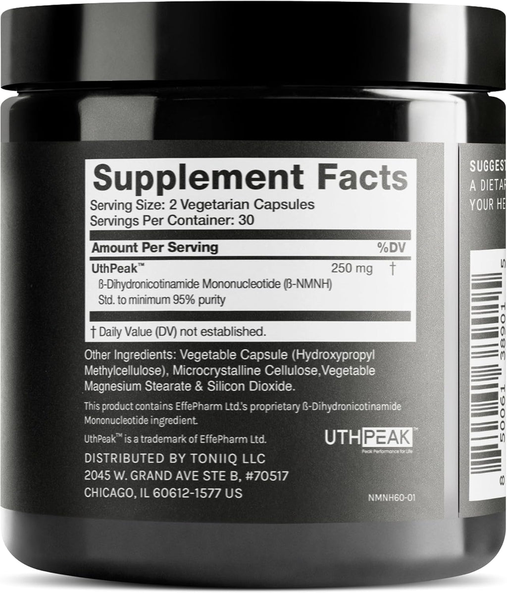 Toniiq NMNH Supplement – Clinically Studied UthPeak™ – 95% Highly Purified & Third-Party Tested for NAD+ & Healthy Aging Support