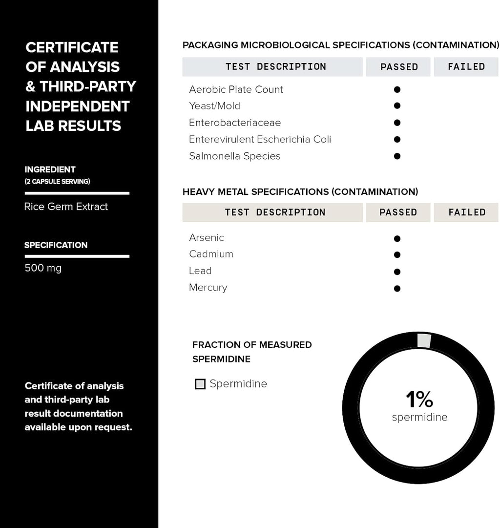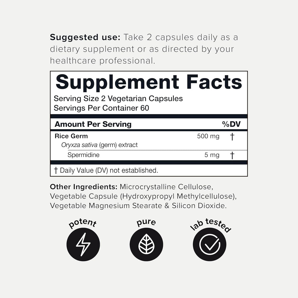 Toniiq Ultra Concentrated 500mg Spermidine Supplements for Men and Women - Non-Synthetic Spermidine Standardized to No Less Than 1% Spermidine - 5mg Spermidine per Serving Rice Germ Extract