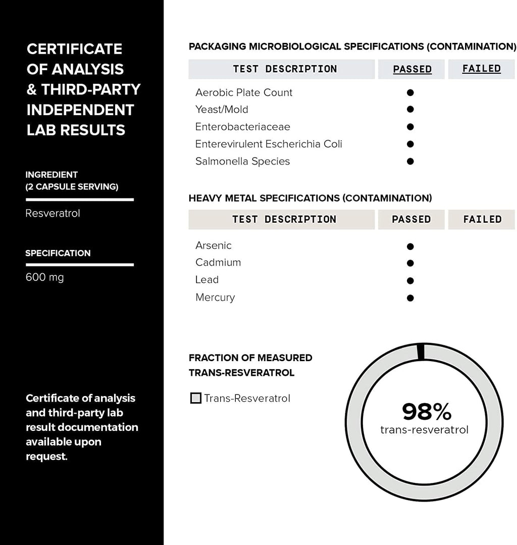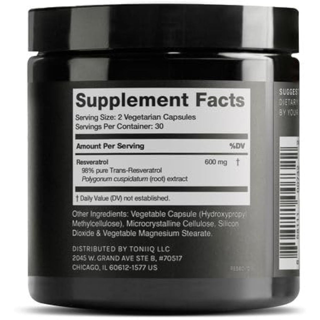 Toniiq Ultra High Purity Resveratrol Capsules - 98% Trans-Resveratrol - Highly Purified and Bioavailable - 60 Caps Reservatrol Supplement
