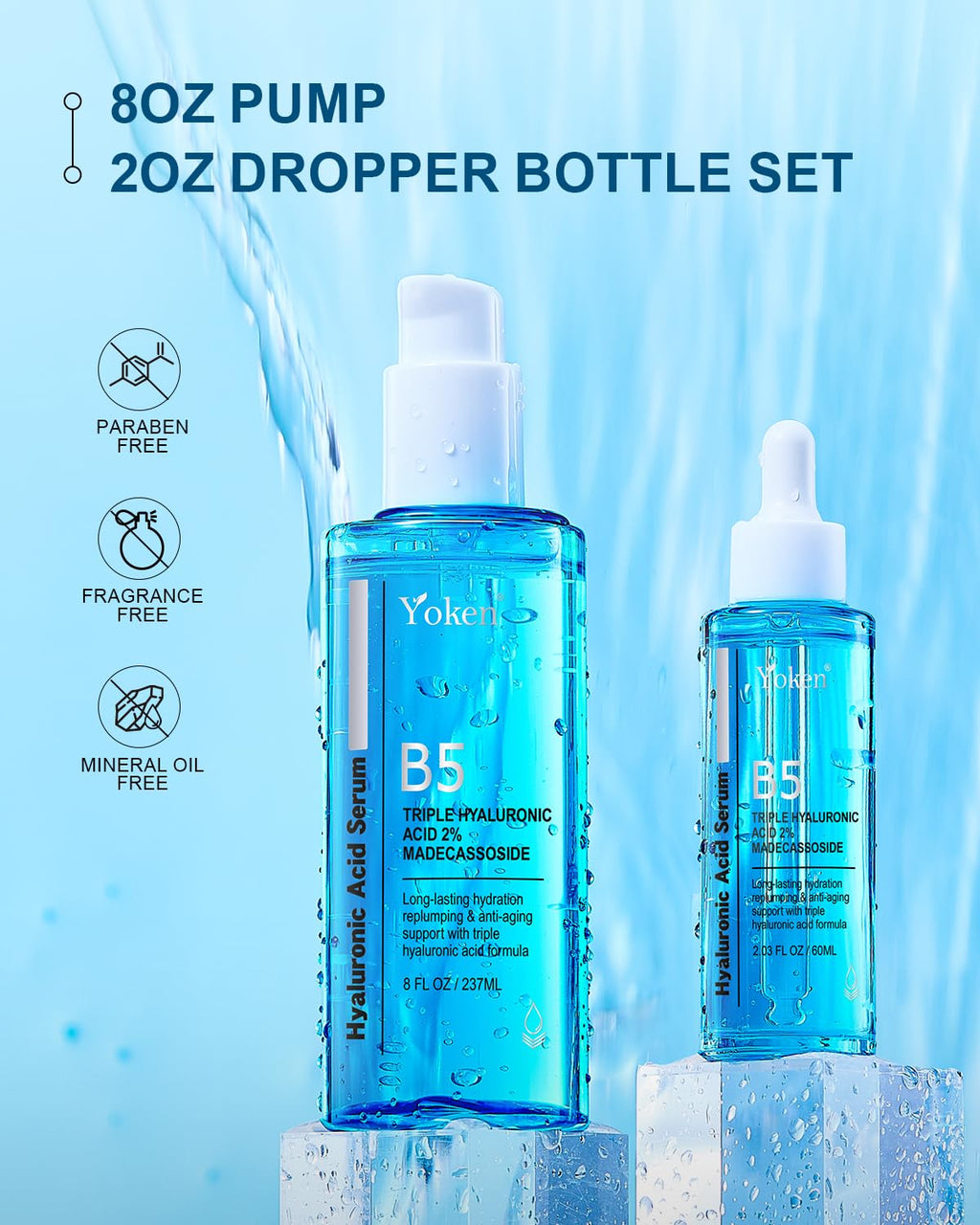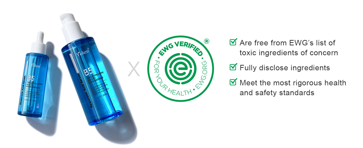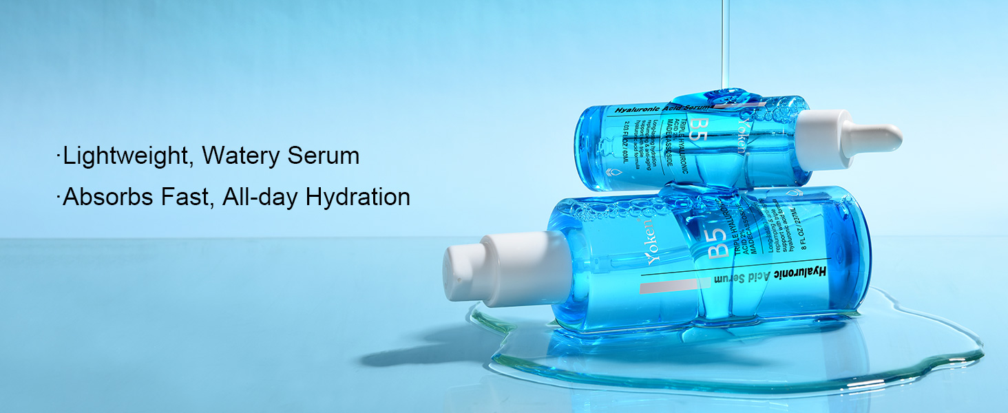Yoken EWG Verified Hyaluronic Acid Serum for Face 8 + 2 fl oz, Vitamin B5 & Triple Pure Hyaluronic Acid 2%, Anti-aging Facial Serum for Fine Line Wrinkle Hydrating Serum Plump Dry Skin Fragrance-Free