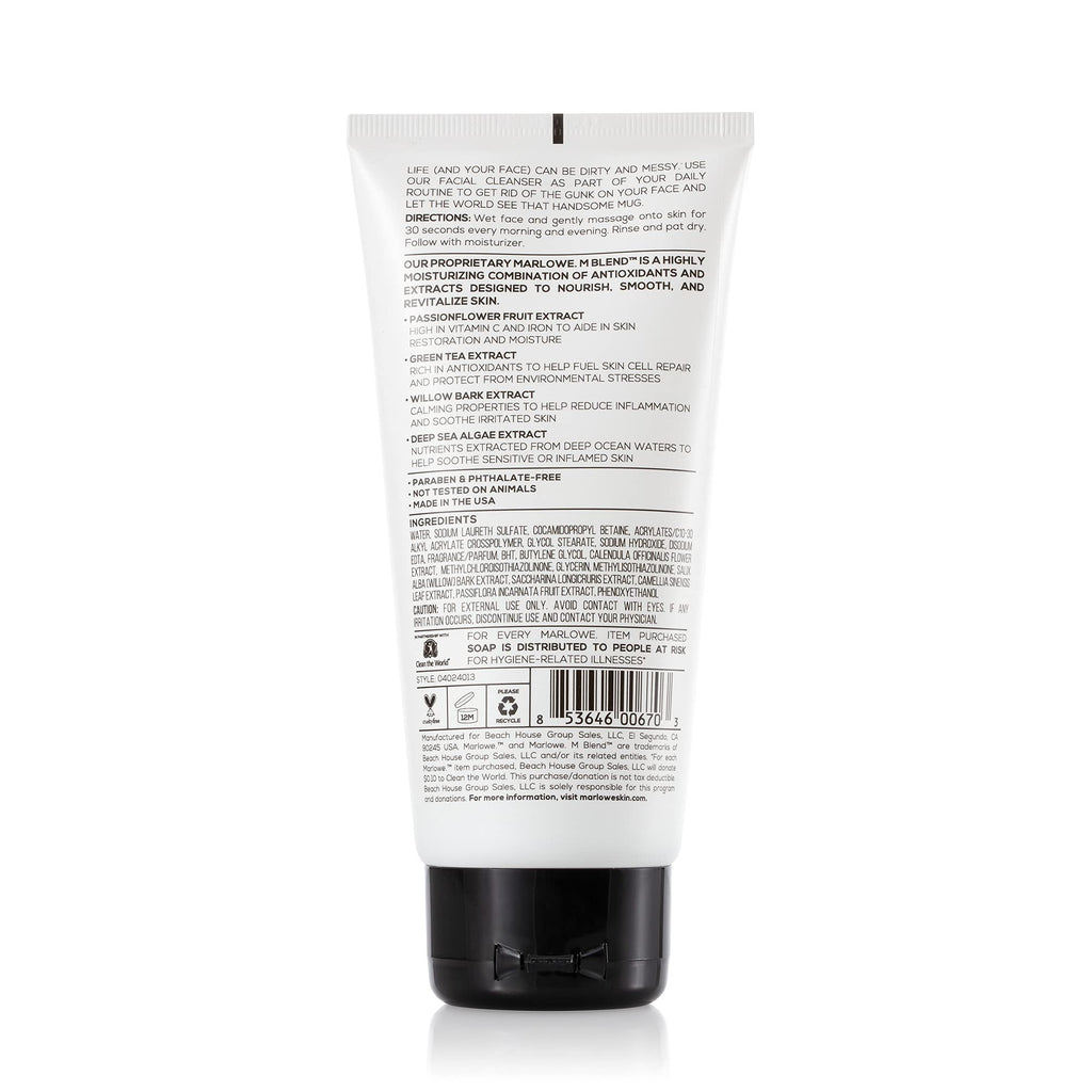 MARLOWE. No. 121 Facial Cleanser for Men 6oz | Daily Face Wash with Natural Extracts & Antioxidants | Soothes, Purifies, Refreshes | Thick Lather, No More Dry