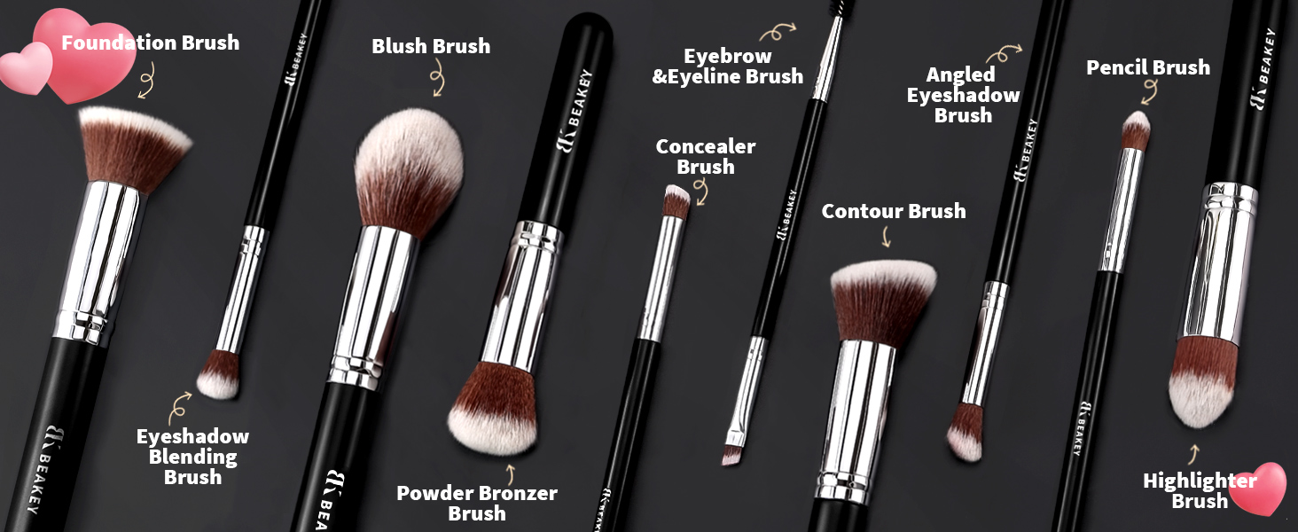 BEAKEY Makeup Brushes Set, Professional Foundation Eyeshadow Concealer Blush Powder Bronzer Applicator, 2 Blender Sponge with Beauty Paper Case