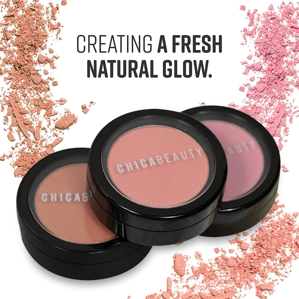 CHICA BEAUTY Blush Powder Makeup for Cheeks Glow, Long Lasting Skin Perfecting, Minimizes Pores, Lightweight Natural Looking Color – Paraben, Phthalate and Sulfate Free, All Skin Types - Barely Mauve