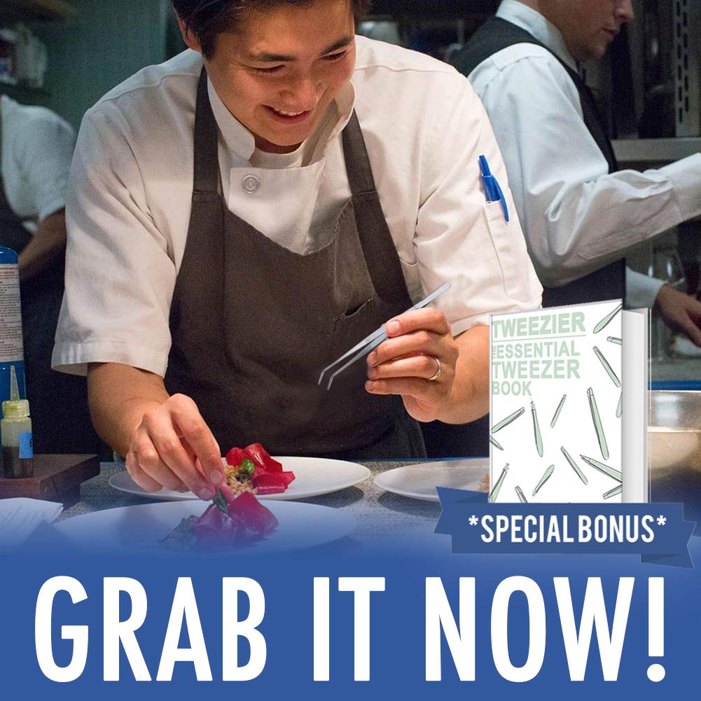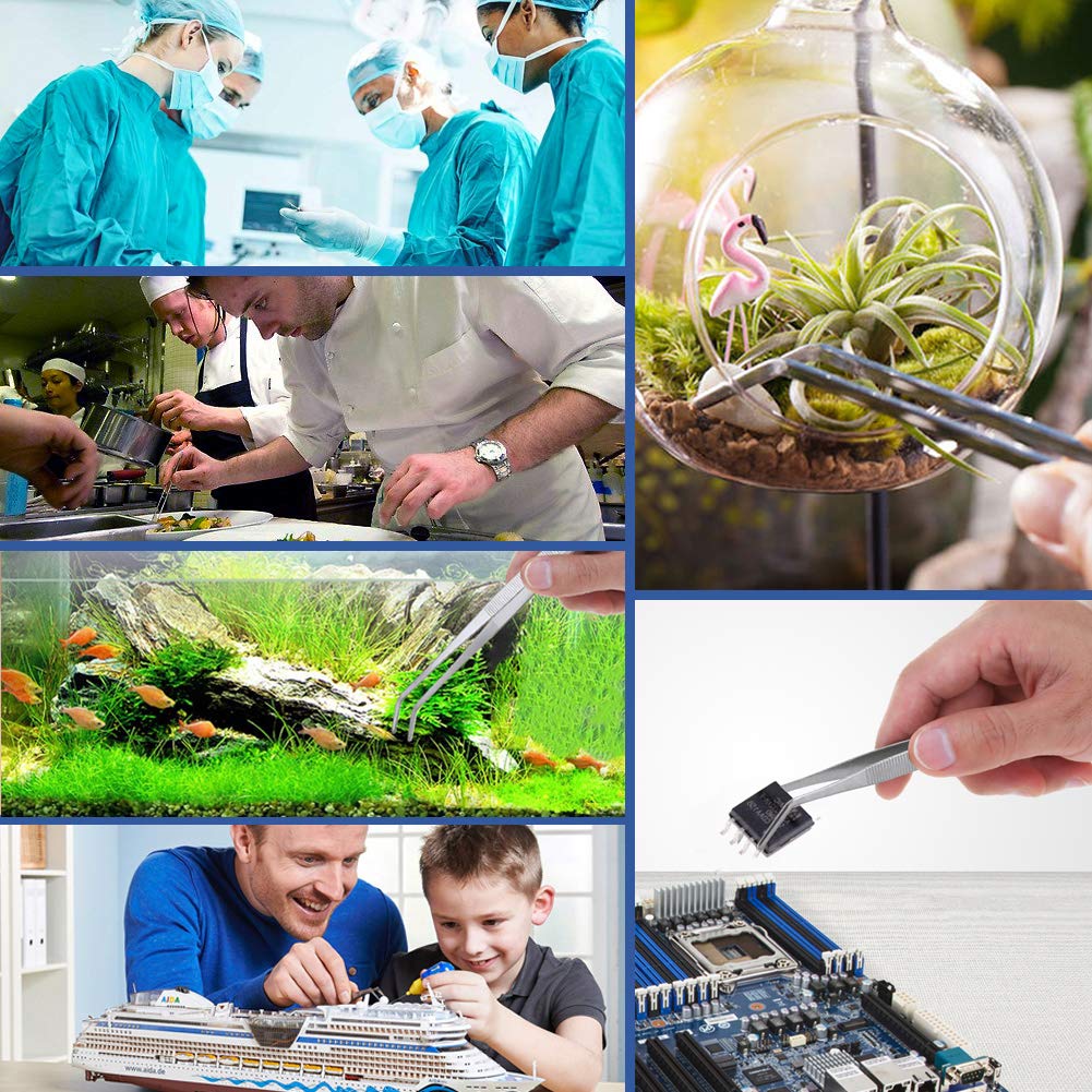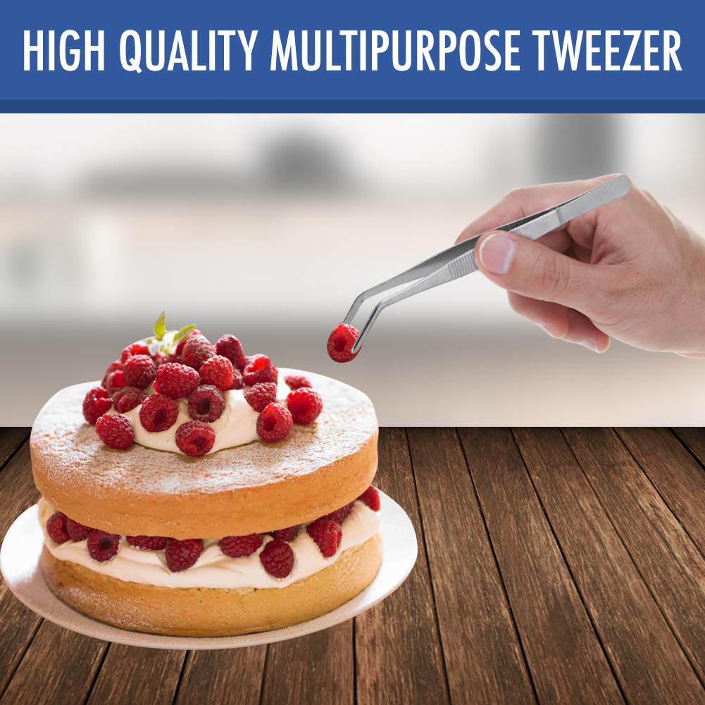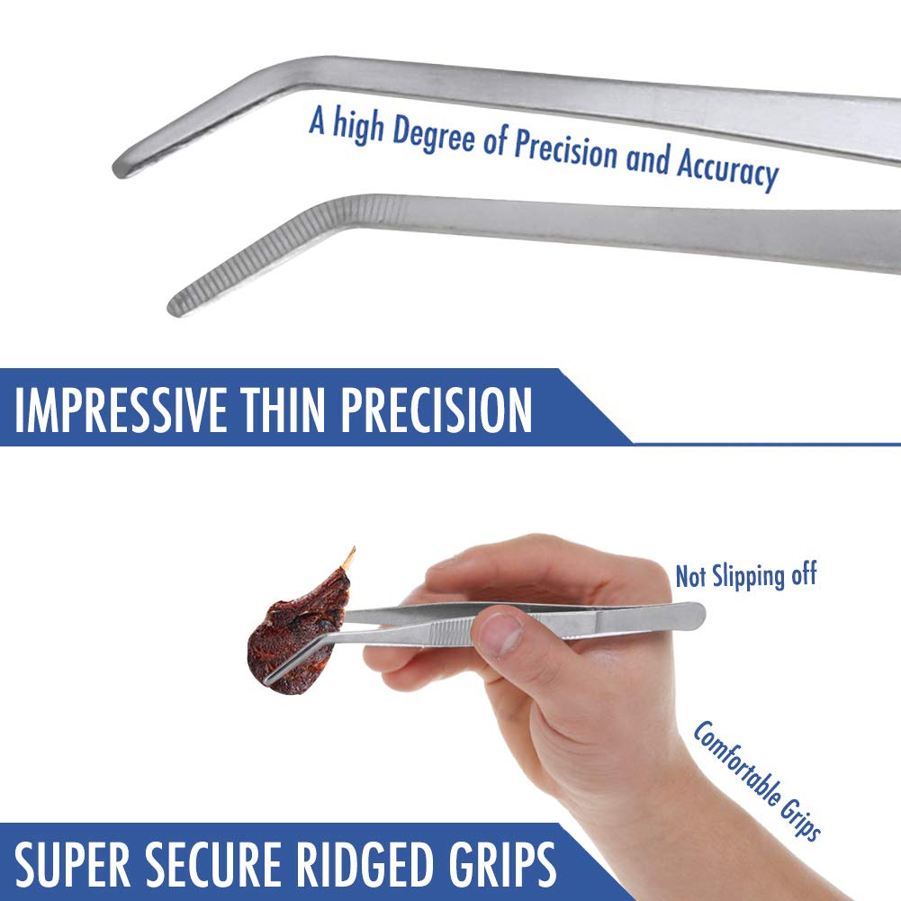 FYBREX 8 inches Stainless Steel Tweezers Curved Tips, All-purpose Forceps Professional Tweezers Tongs with Comfortable Ridged Handle for Beauty Crafting Cooking Repairing and General Purpose
