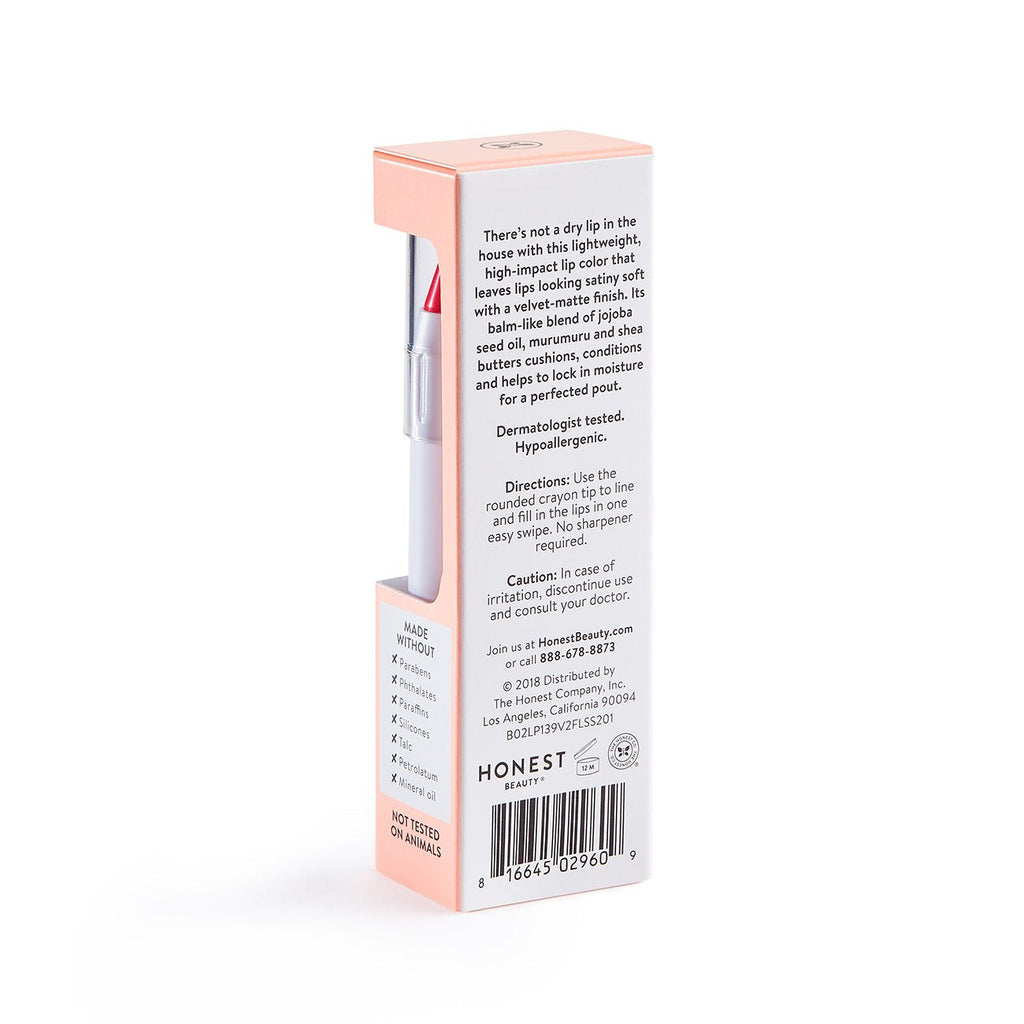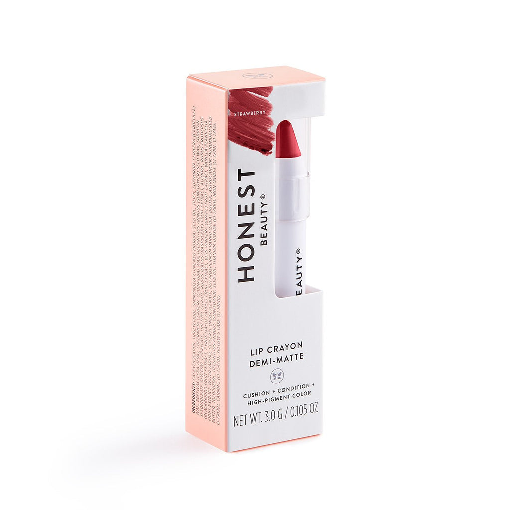 Honest Beauty Lip Crayon-Demi-Matte, Strawberry with Jojoba Oil & Shea Butter | Lightweight, High-Impact Color | EWG Certified + Dermatologist tested + Hypoallergenic & Cruelty free | 0.105 oz.