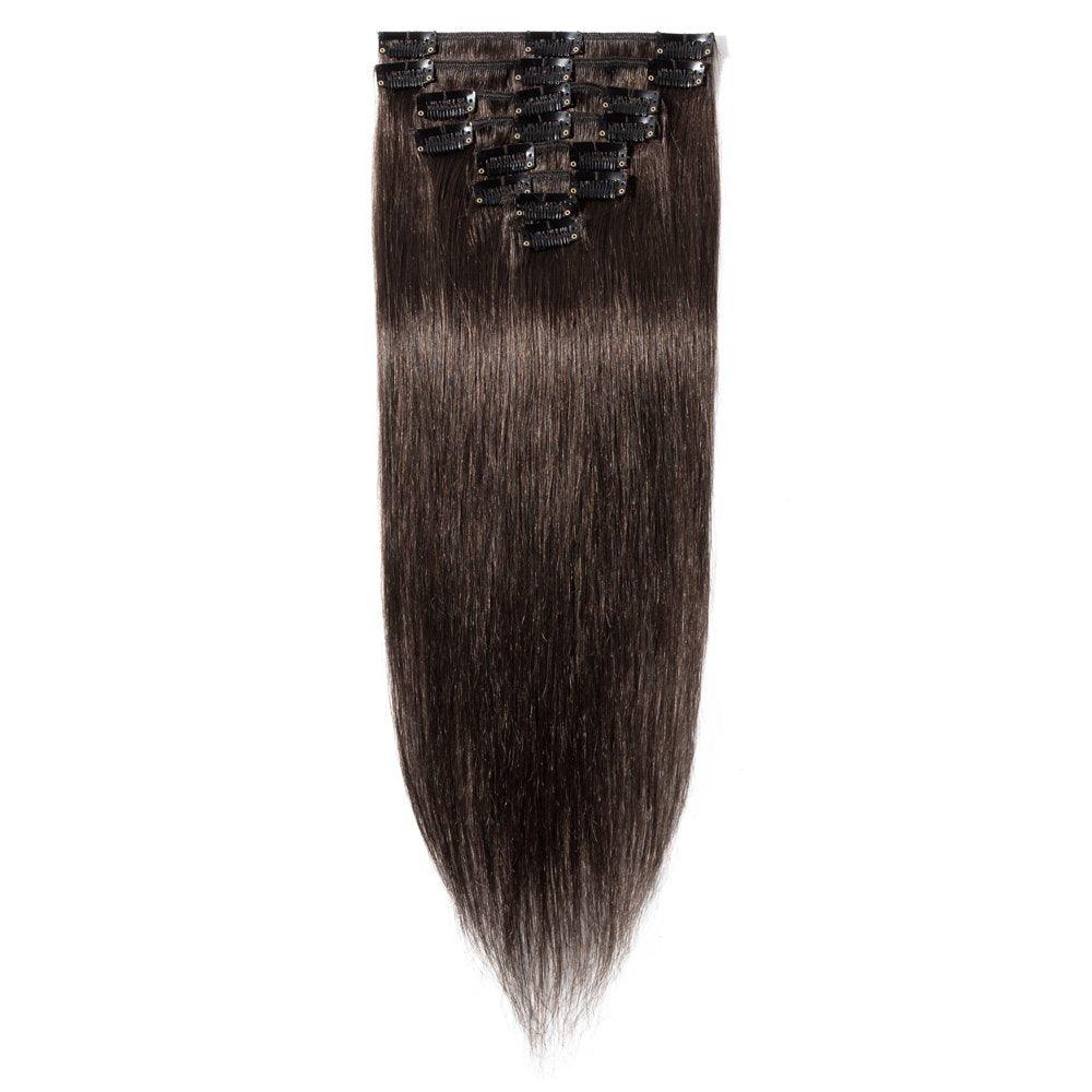 MY-LADY Clip in 100% Remy Human Hair Extensions Grade 7A Quality Full Head 8pcs 18clips Long Soft Silky Straight for Women Beauty #2 Dark Brown 22" / 22 inch 110g