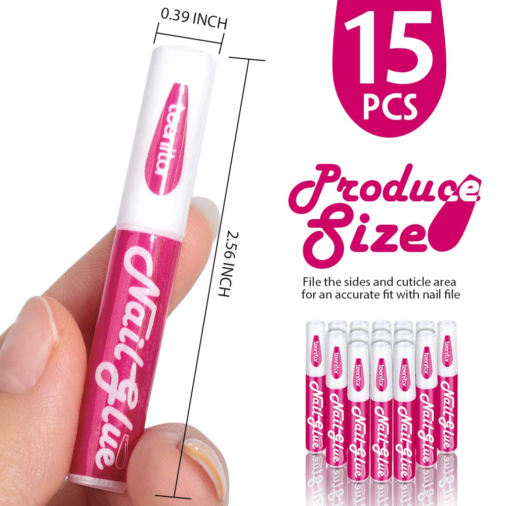 Teenitor Nail Glue, 15 x 2g Mini Professional Beauty Nail False Art Decorate Tips Acrylic Glue