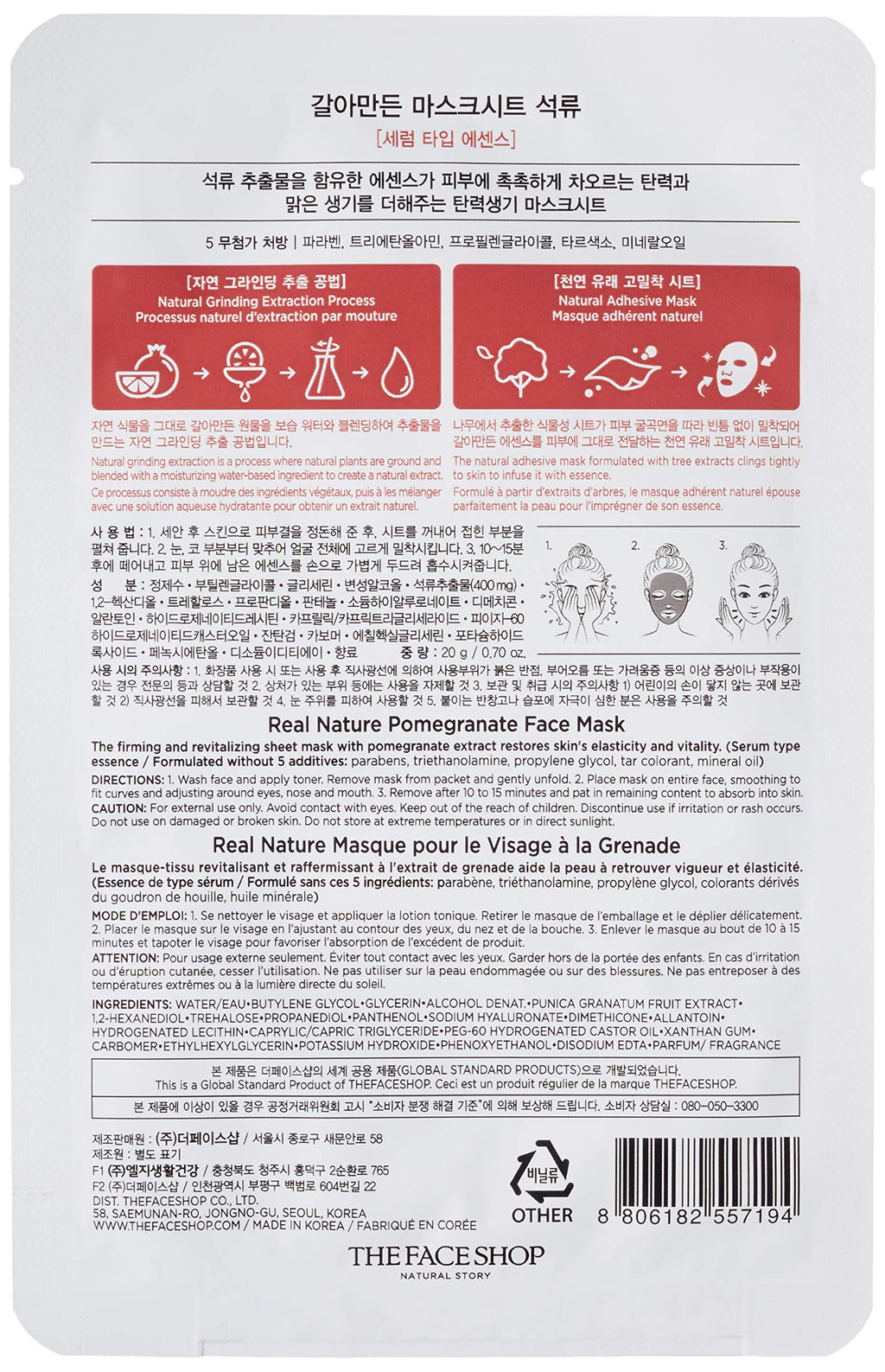 The Face Shop Real Nature Face Mask | Improves Skin Resilience & Moisturizing, Great for Customers Who Often Flushes | K Beauty Facial Skincare for Oily & Dry Skin | Pomegranate