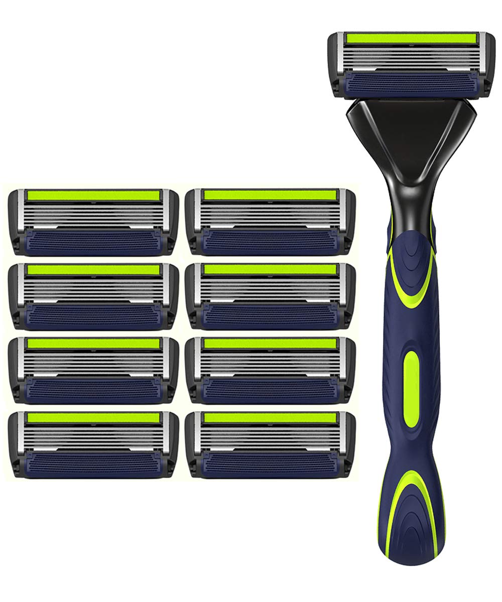 DORCO Pace 6 Sport System - Six Blade Razor System with Trimmer and Pivoting Head - 9 Pack (1 Handle + 9 Cartridges)