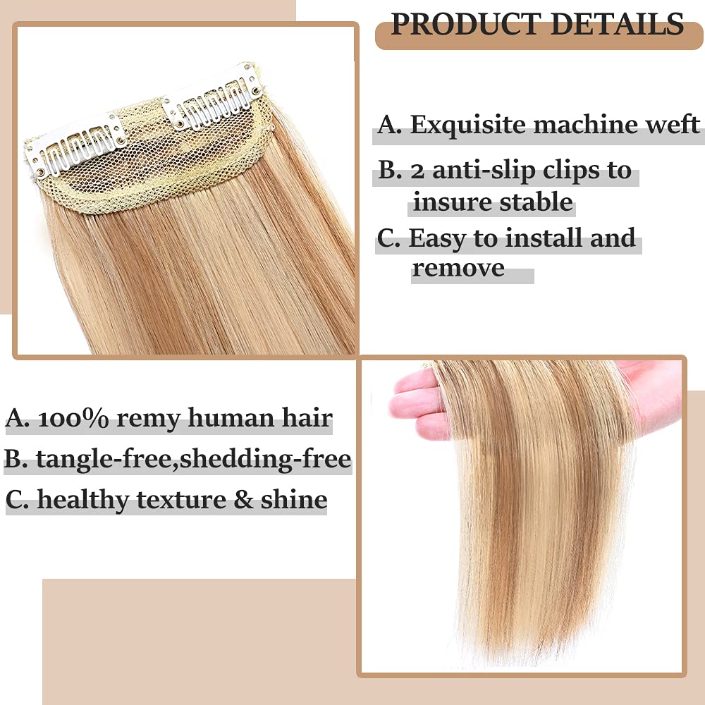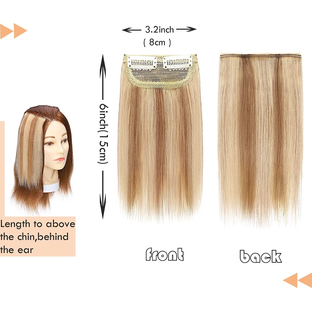 Invisible Clip in Mini Hair Extensions Human Hair Seamless Hairpin Hair Pad Short Straight Hairpieces One Piece Wiglet Hair Filler for Adding Hair Volume 6 Inch Golden Brown mix Bleach Blonde