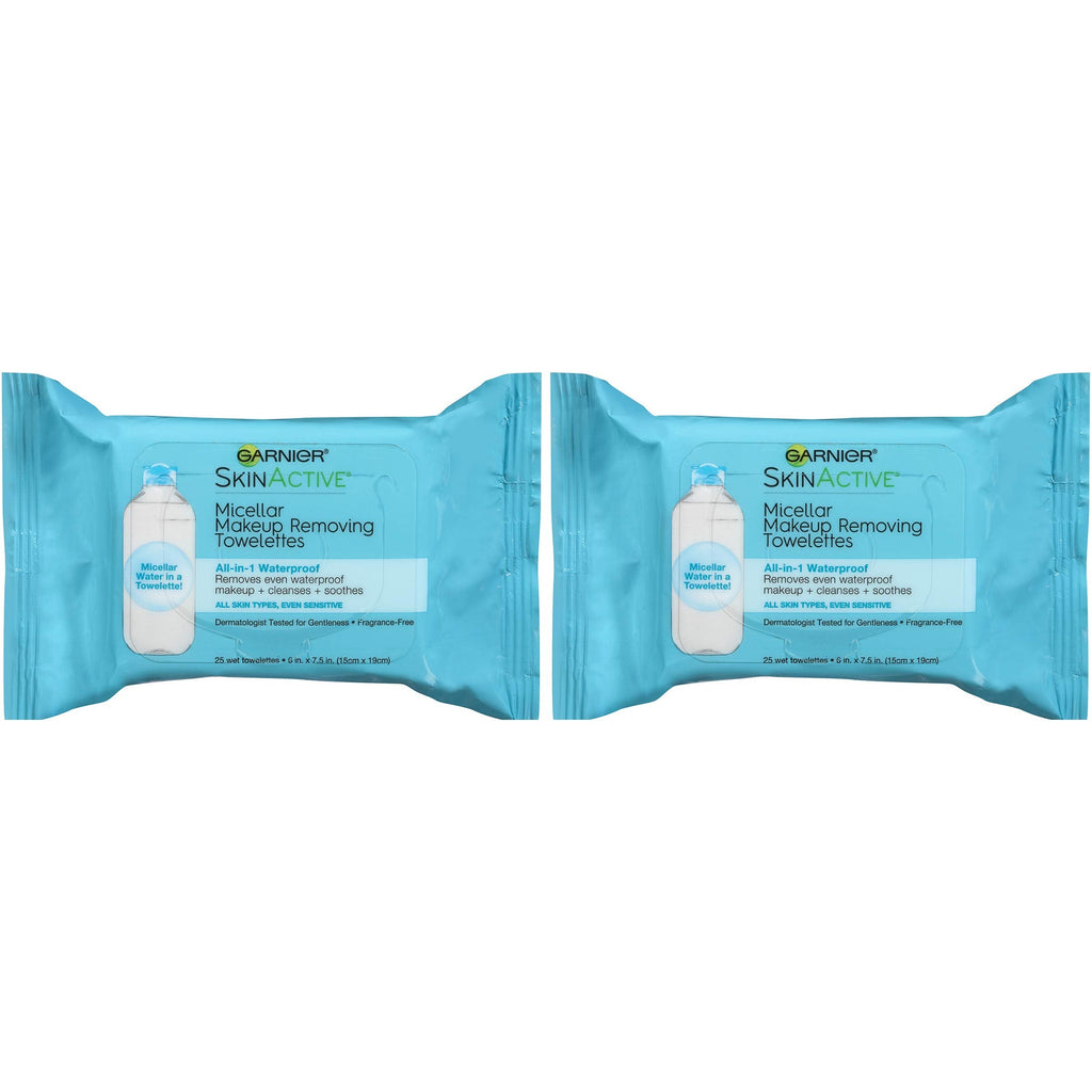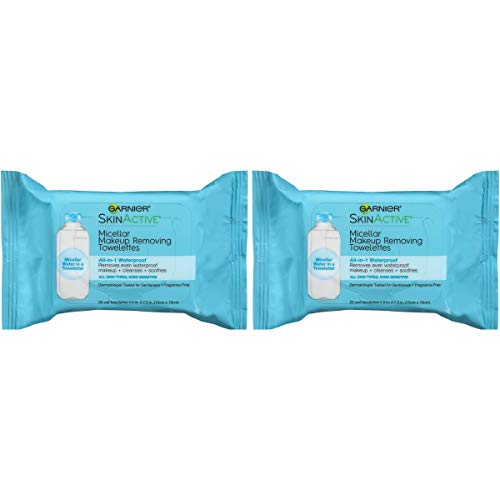 Makeup Remover Micellar Gentle Cleansing Wipes for Waterproof Makeup by Garnier SkinActive, 25 Count (Pack of 2)