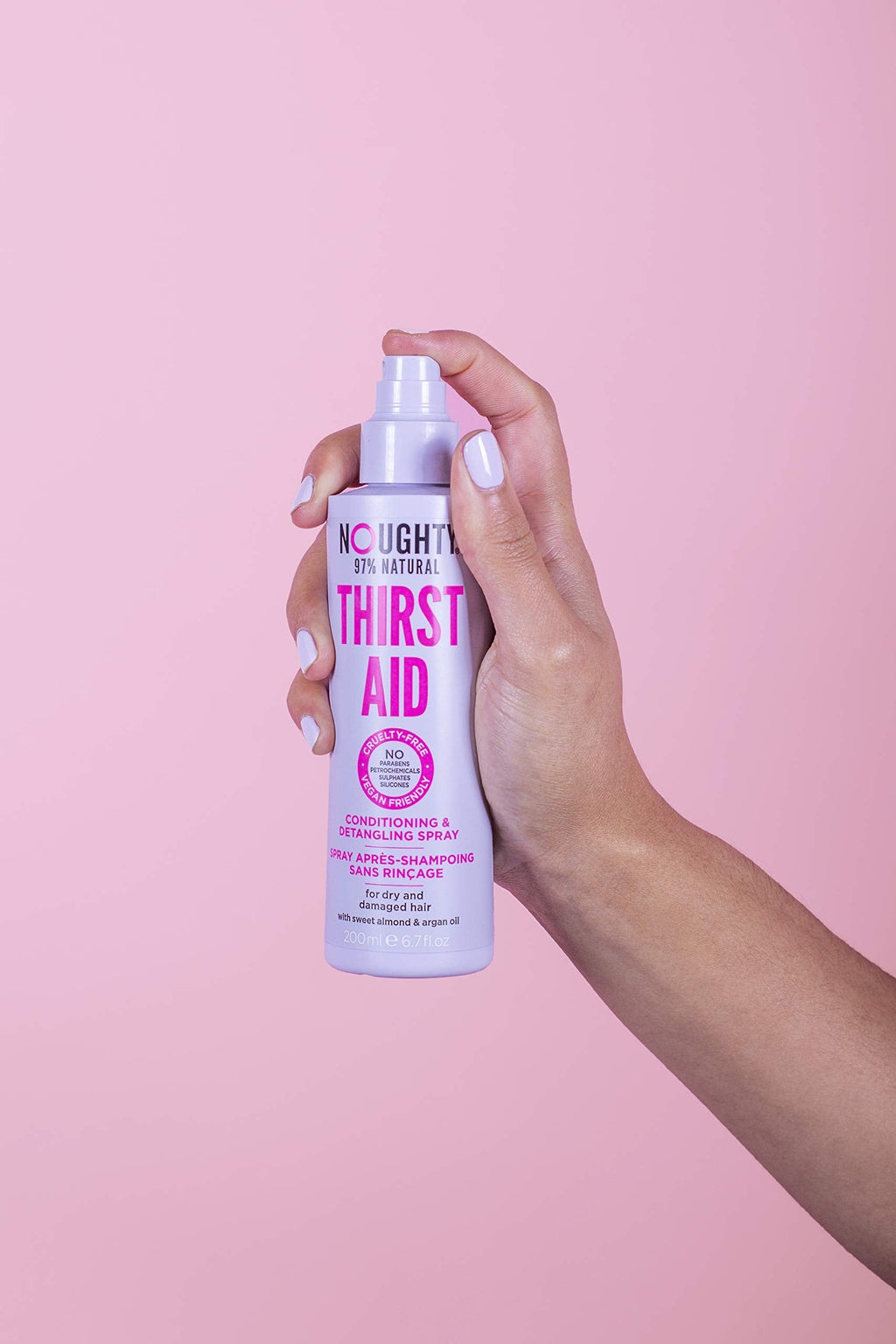 Noughty Thirst Aid Conditioning and Detangling Spray for Dry, Frizzy and Damaged Hair, Vegan 97% Natural, Sulfate Free Silicone Free Paraben Free Hair Detangler with Argan Oil, 200 ml / 6.7 fl oz